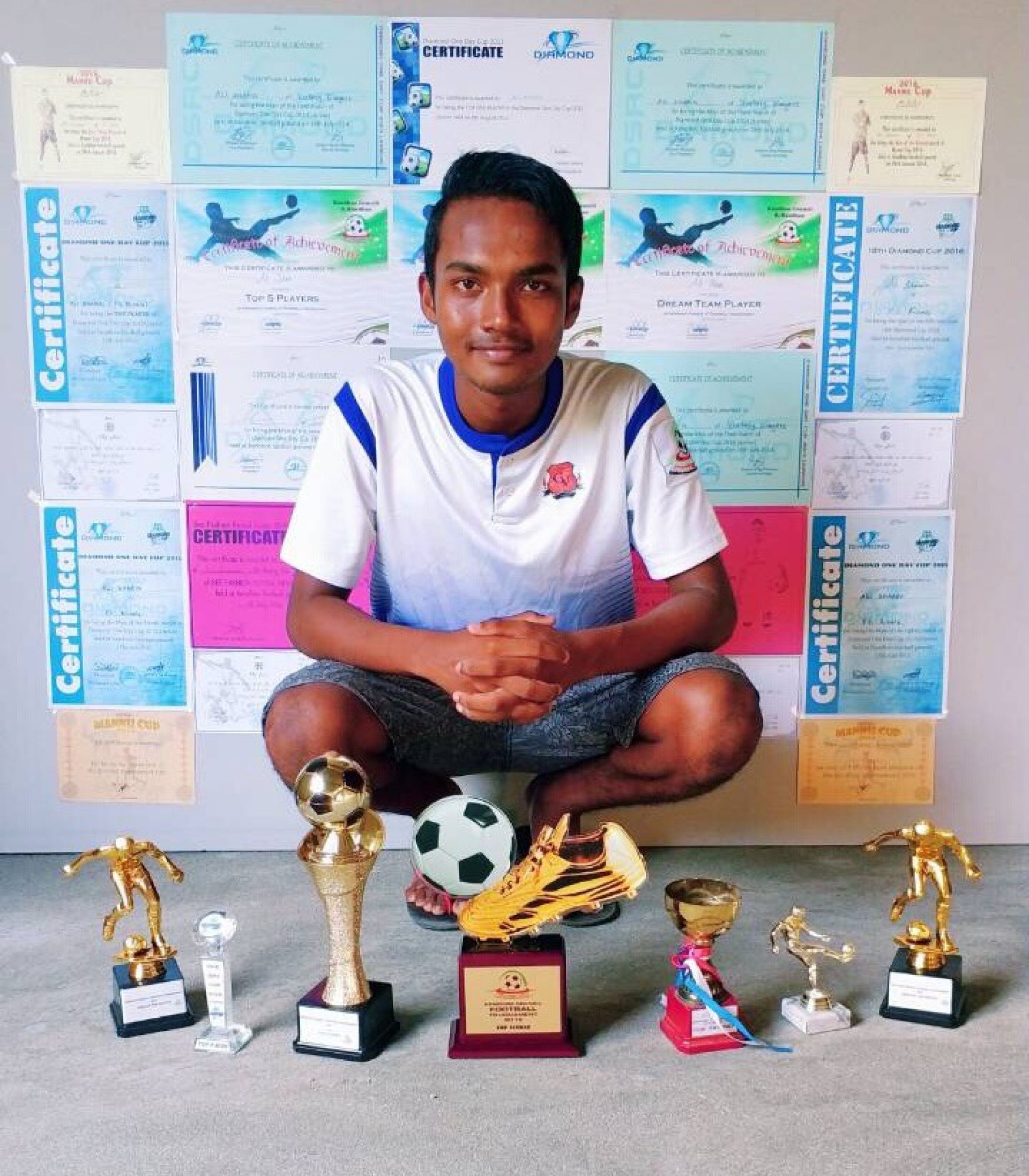 ❖ 2018 Kendhoo Council 4th Football Tournament: 2 man of the match, Dream team player, in top 5 players of the tournament and the golden boot winner.