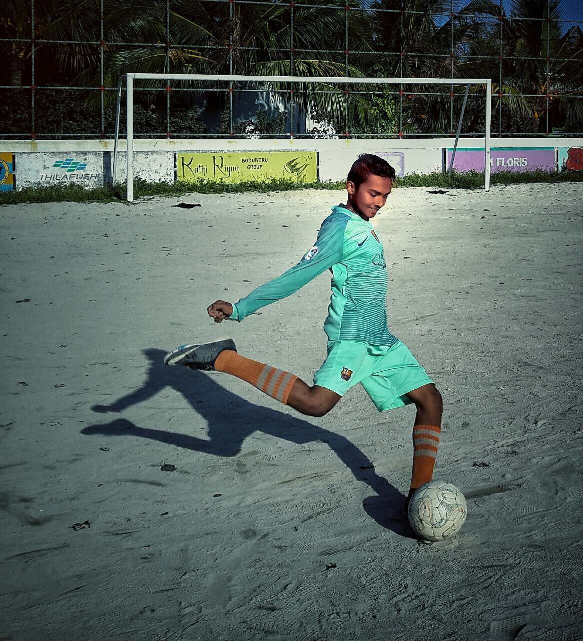 This is the vision and the dream which habitants of 1300 of B. Atoll Kendhoo School grade 10 student Ali Shain. Without proper facilities he’s been improving in football since he started playing football at age 10. And B. Kendhoo islanders, other than hosting small football tournaments, doesn’t have the means to improve or develop football in the island.