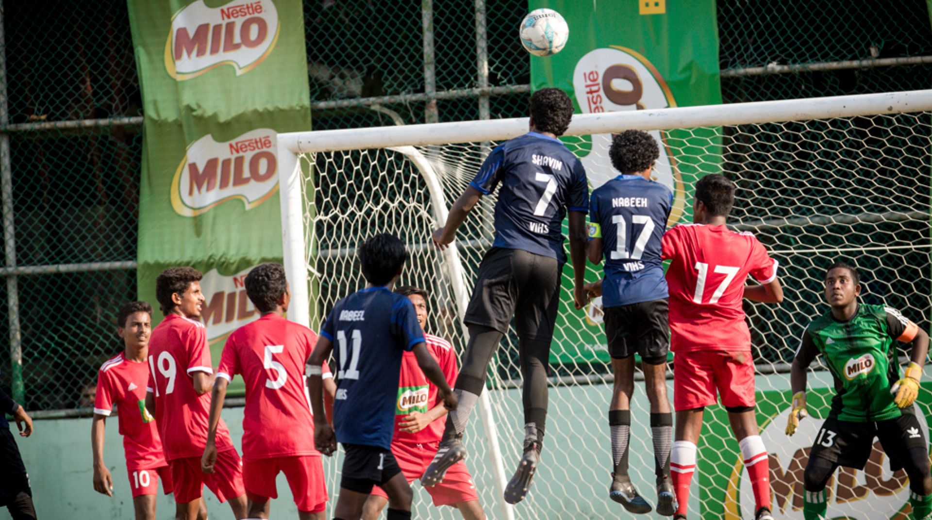During a corner, match between B.Eydhafushi and Villa International High School (2018) - Photo: Images.mv |