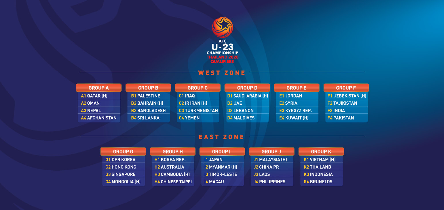 As the qualification tournament draw was taken on November 7th , 2018 in the main AFC house located in Kuala Lumpur, Malaysia, total 44 teams have being drawn into 11 groups, 4 teams in each equally. 11 group winners will advance to the final tournament, 2020 AFC U-23 Championship, Thailand. Followed with the best four runner-ups from all the groups.
