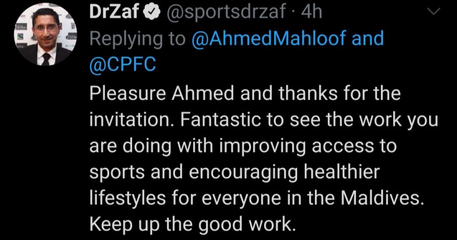 ކްރިސްޓަލް ޕެލަސް އެފްސީގެ ޑރ. ޒަފްގެ ތައުރީފާ ޝުކުރު މަހްލޫފަށް!